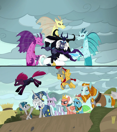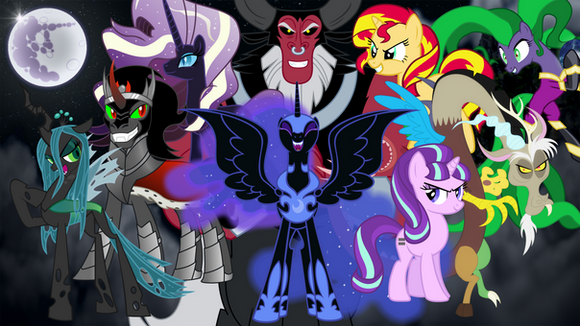 Think you could replace corrupted twilight with midnight sparkle, Pinkamena diane pie with the sirens, amulet alicorn Trixie with Gaia everfree and Iron will with ahuizotl? Oh and maybe add twivine sparkle in this too?