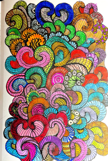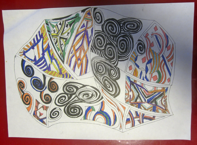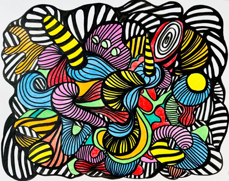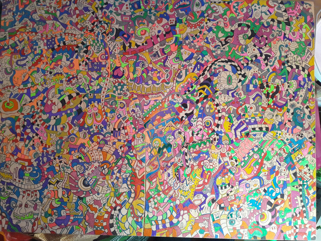 It turns out it's not just easy, it's also very enjoyable and stress relieving! I present to you the stereogram coloring page I designed, printed, and colored (yes, those are the IKEA markers!).
