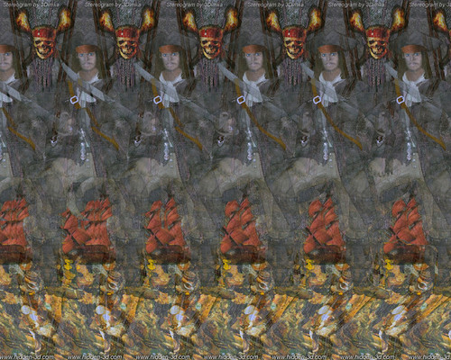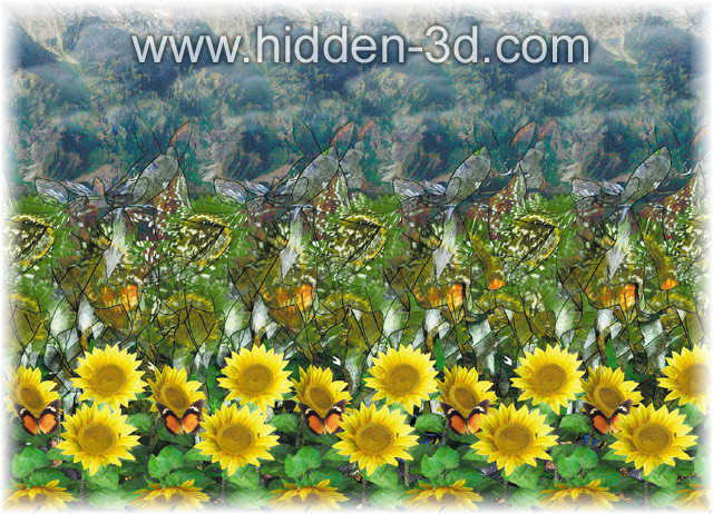 This stereogram has 2 fascinating features:1. lots of levels depth, not common for the stereograms with hidden image