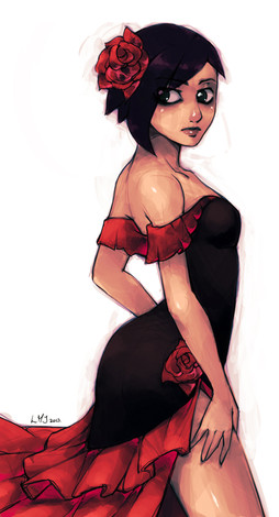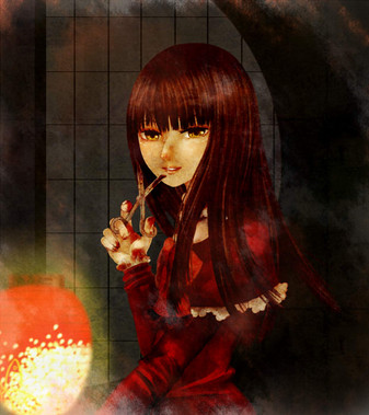#choker #dress #flower #hairbun #klk #necklace #satsuki #wine #woman #killlakill #chandelier #restaurant #kiryuinsatsuki