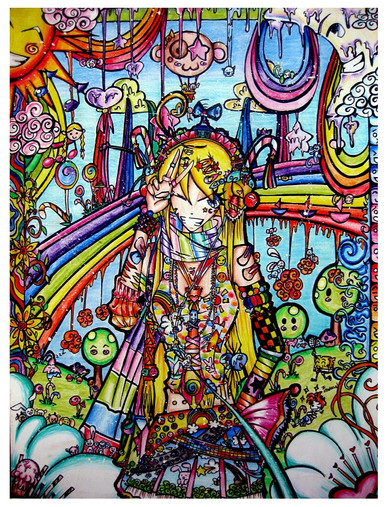 Wow. Nice drawing, crazy-positive colors and well-detailed background. Very good!