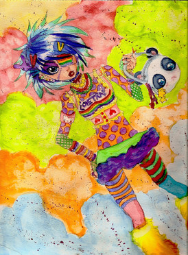 Another fantastic collage of colors and ideas! I especially love the color gradient of the girl, green to red, with the purple spot mixed in for seeming randomness! Again, this picture is a fantastic example of raw expression, your spontaneity is exemplary, and the sheer JOY of the picture is fantastic.