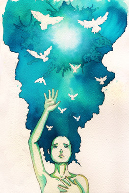 I love watercolor work and this is just amazing! I love the palate used and the blotchy texture that you have! I also love your birds! I wish I could draw like that!