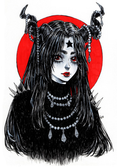 I was skimming Pinterest and saw a gorgeous makeup where the model had her eyes and forehead covered in red and drew my own take of that