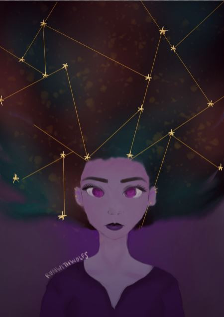 My laptop had some problems and it needed to be wiped clean. But when I got it back I decided that I should put in a new password. Well, I forgot this new password. So for the next few days I was googling how to hack into windows. Anyways I managed to remember my password.So the painting. I just wanted and excuse to draw galaxy hair. I have this weird fetish with drawing hair :/