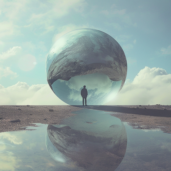 impressive work...I like the texture of the ball like object and the light that shines off of it onto the water...the lone figure of isolation and awe, at least to my eyes...regards....David