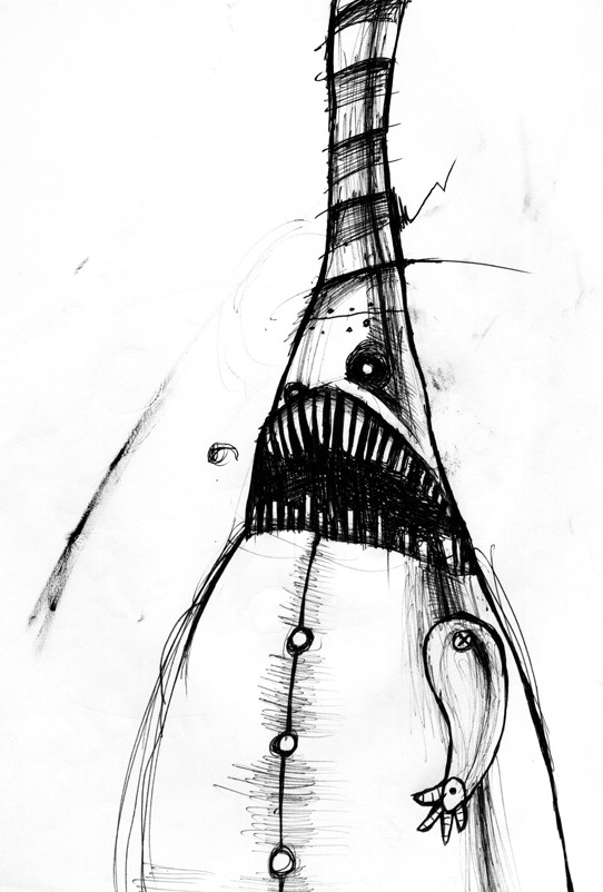#attack #ballpoint #bic #big #biro #city #creature #creepy #dark #darkness #drawing #drawn #ink #leaning #monster #paper #pen #post #rest #resting #roar #roaring #tall #thing #tower #towering #vicious #white