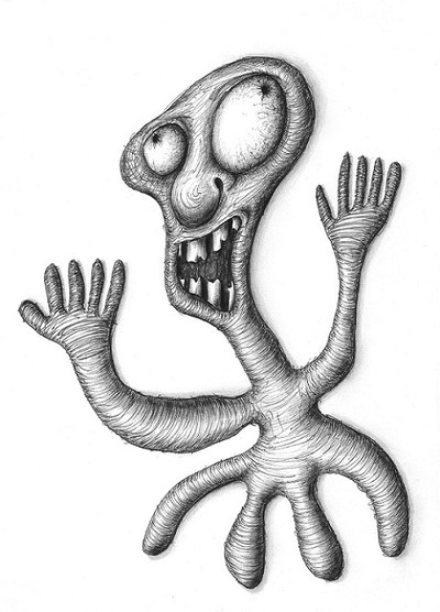 haha!! I just googled it. That's amazing and bizarre, I love it It reminds of when someone said that one of my drawings reminded them of 'Salad Fingers'. Google that! I dare you