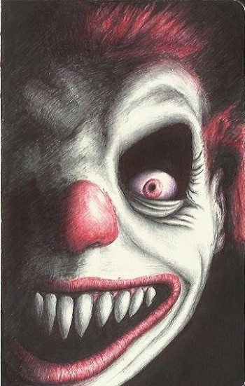 Very creepy and effective. I really like the line work and expression of the face. Well drawn.