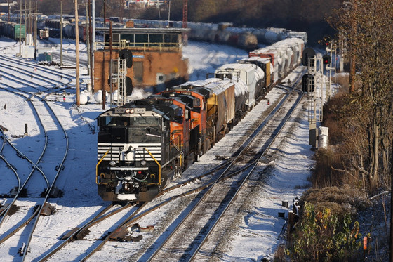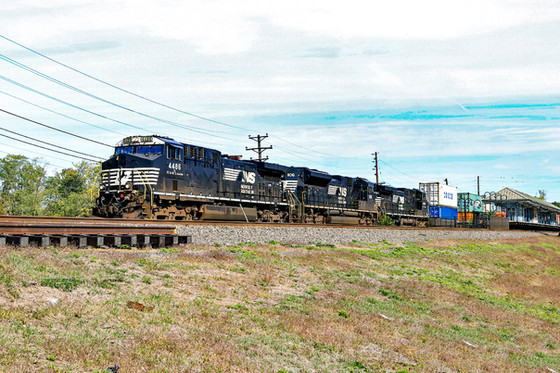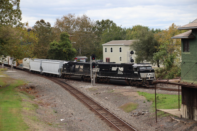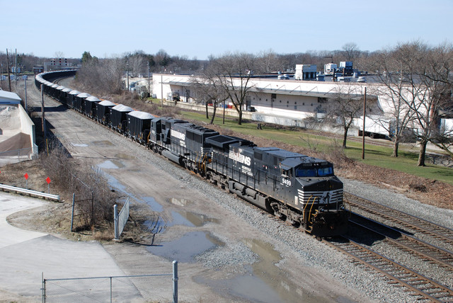 NS 4004 the blue mane rebuilt at NS Juniata Shops leads #777 empty coal train at Wilmerding, PA. 11/12/16.Related content