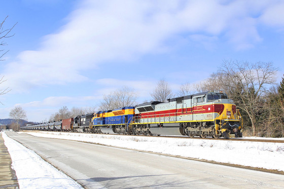 NS 15N freight train with an ex CR SD60M, a ex CR Dash8 , and 2 BNSF Dash9's pass through Rochester, PA on 10/5/08.Related content