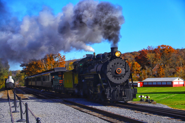 Cass Scenic Railroad Heisler #6 takes a freight around the curve at Spruce, WV. during Cass Railfan Weekend 5/16/15.Related content