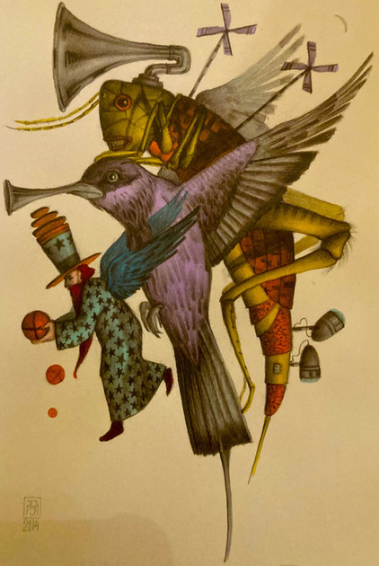 I am reminded of a painting my very awesome art teacher did while he was at art school based on a very famous painting.