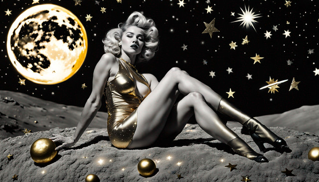 #classicbeauty #crescentmoon #highheels #hourglassfigure #nightscene #pinupgirl #redlipstick #starnight #vintagestyle #pinktheme #champagnebottle #femininepose #retroglamour #satinfabric #cheekyart #1950shairstyle #retroaesthetic #pinkbodysuit #oversizedprop #fantasyadvertising #flirtatiouspose #playfulpinup #glamourvibes #rosΓ©champagne #sparklingfantasy