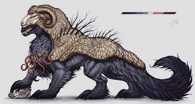 #beast #bones #fantasy #goat #hellish #horns #horror #monster #muscles #ram #skull #studies #tongue #42ly #extraeyes