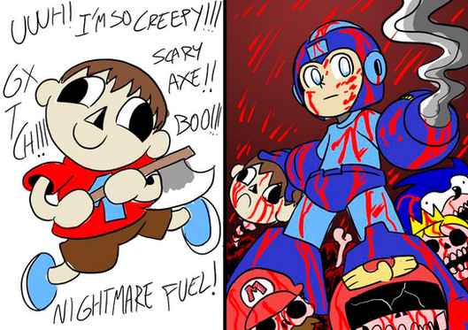 Villager, the true nightmare of smash bros, has a little fear himself...