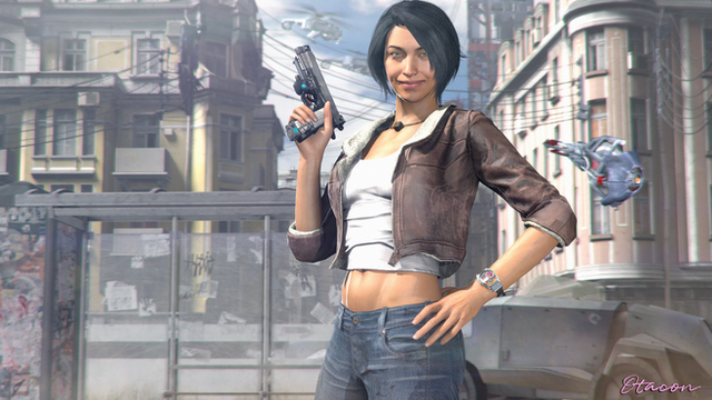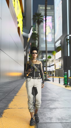 I like the cyber feel to this as well as the overwhelming weight of the buildings and the central focus on the subject. /Main figure.