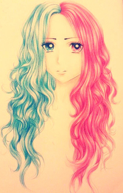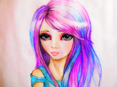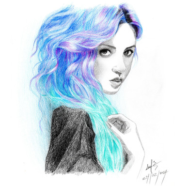 #blue #bluehair #browneyes #coloredhair #freehand #girl #indigo #people #purple #purplehair #selftaught #sketch #traditional #traditionalart #traditionaldrawing #watercolor
