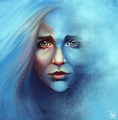 #bluepaint #digitalart #digitaldrawing #digitalpainting #digitalportrait #girl #handprint #portrait