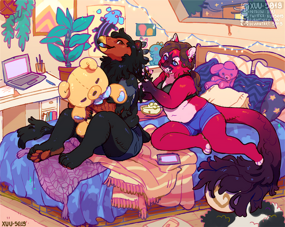 i've actually been anticipated commenting on this piece since seeing it in Cyn's grem's toyhouse gallery and I still can't really articulate how much I admire it!! Love the lighting, the palette, the detail in the setting, and just how soft & sweet the scene looks! Your scenery work is astounding :'0