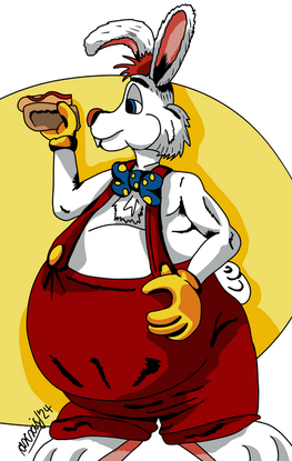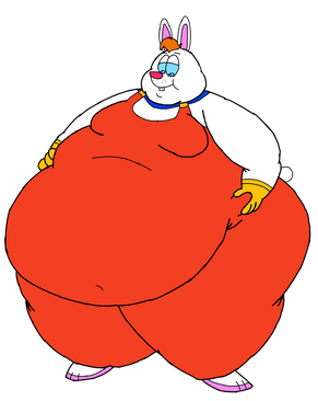In this depiction, Roger has just been inflated large as ever, yet the air doesn't escape him. Nect thing you know, Raul R. Raul shouts "cut" one last time and Roger will have to spend the rest of his life (or the duration of the movie) as an uber-puffed toon.