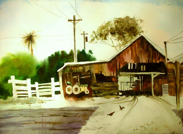 Hey that's really charming. It's so rich and detailed. I like the etchy rough tactility of it, it's kindof authentic country ..scruffy rustic ..ness. Is this from a photo reference or on location? I'm gonna guess you added some little props to this, the cat/goose/boots/bike? I really like them