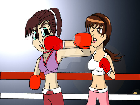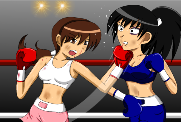 "Vera took the jab grunting slightly but she swayed back and avoided the hook, and struck fast two straights to the nose of her opponent.Kim felt her head reel backwards as the two straights hit her dead on. The crowd roared in approval. Her body followed suit, backing up again, this time into the ropes. She put her guard up and waited, inviting Vera to strike first."