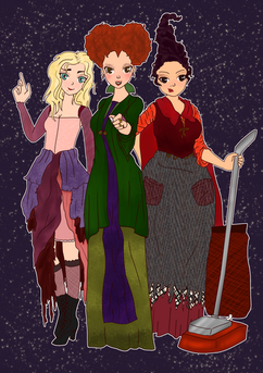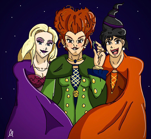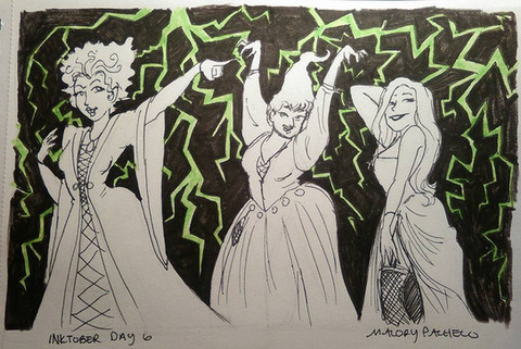 INKtober Day 15!HOCUS POCUS! Pne of my favorite Halloween movies from my childhood. Here, we have the Sanderson Sisters debuting. Mary, Winifred, and Sarah. Three very funny, and very gorgeous witches. Enjoy.
