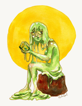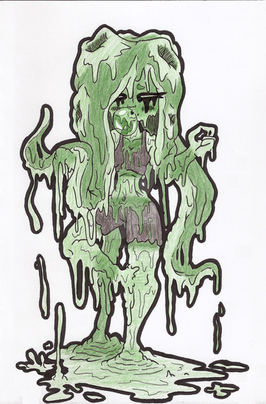 HUEvember #3Yellow Green is the ugliest color I swear. :I I've been trying to let the color of the day inspire what it is that I draw and so you end up with a lot of gross things from gross colors, but hey I actually really like this for what it is. I've been itching to draw a really slimey/melty person for a while and its hard, whoa nelly its hard xD Draw a shape that's losing its shape but still resembles its previous shape. -_- But hey, I did it! XD