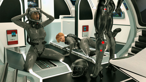 The attack sub had just made it passed the outer marker when the sensors picked up something large towards it, when it was in the range the sexy blonde pilot in her skintight red latex environment suit opened up with the subs weapons and the large alien sea serpent that was about to eat her was no longer a threat