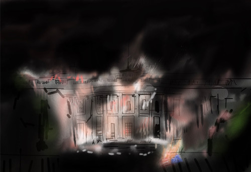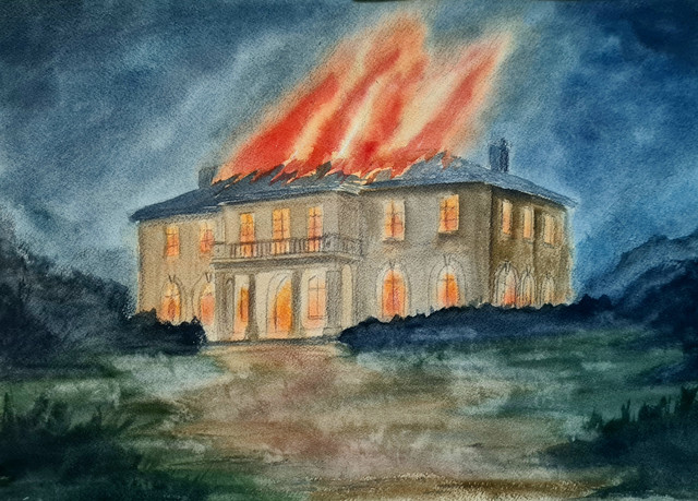 #black #bolt #burn #dark #flames #house #lightning #night #romanticism #fire #lucjan_