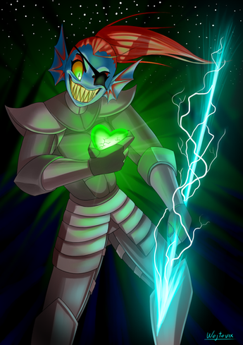 I love this style for Undertale characters. Slightly uncanny look to it. There's a reason they were called monsters: they were a bit scary. My favorite art of Undyne for sure.
