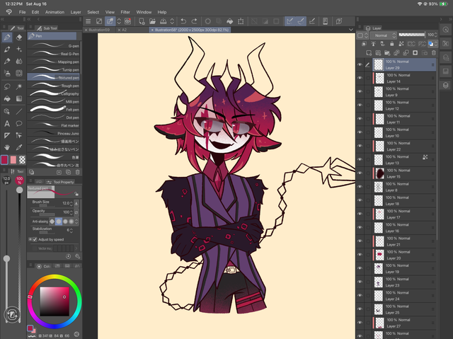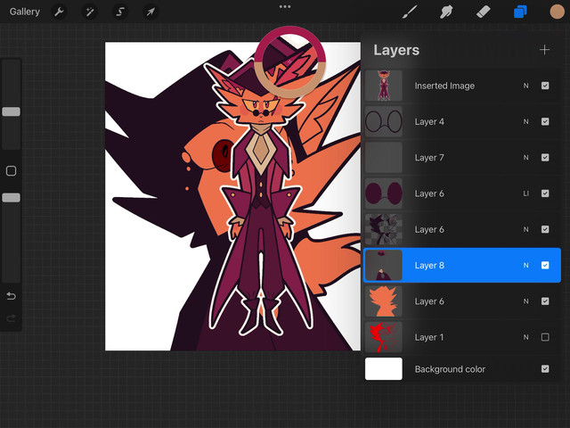3. I'm not sure what you mean by that. I guess I color the character completely and when I'm doing that I use the wand tool to keep it in the lines. I keep it in like that and add the filters on.