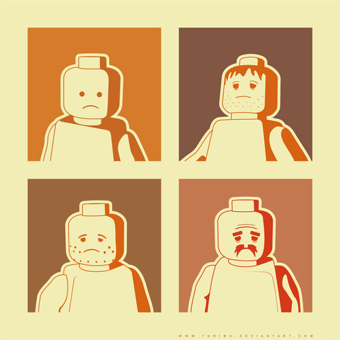 Using just two colours in an image. Although obviously, this doesn't apply to the entire piece, just the individual robots.