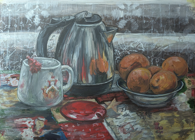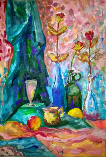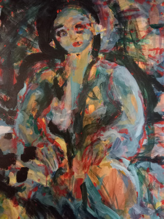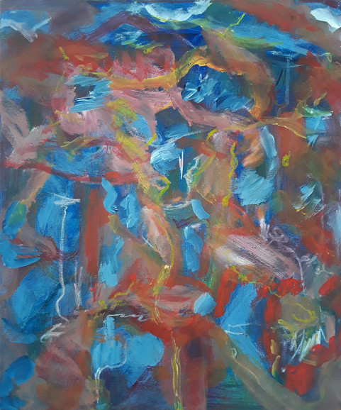 Collab with my mentor Ari ´Akana ´Parviainen ( 1948 - 2008 ) , he was an artist of little renown , but ( as a way of compensation )he was infamous drunkard and womanizer . Tempera , oil pastel and pen on canvas , 196? - 2017 .