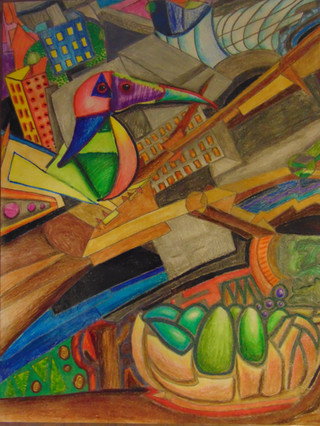 Thanks Conny . I think the painting is old egg tempera that's flaked off - all i did was some scratching and oil pastels .