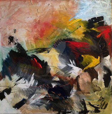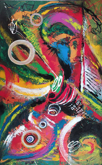 Tom and his kill sz 51 x 60 cm , acrylics and oil pastel on canvas , 2022 .Sonnet