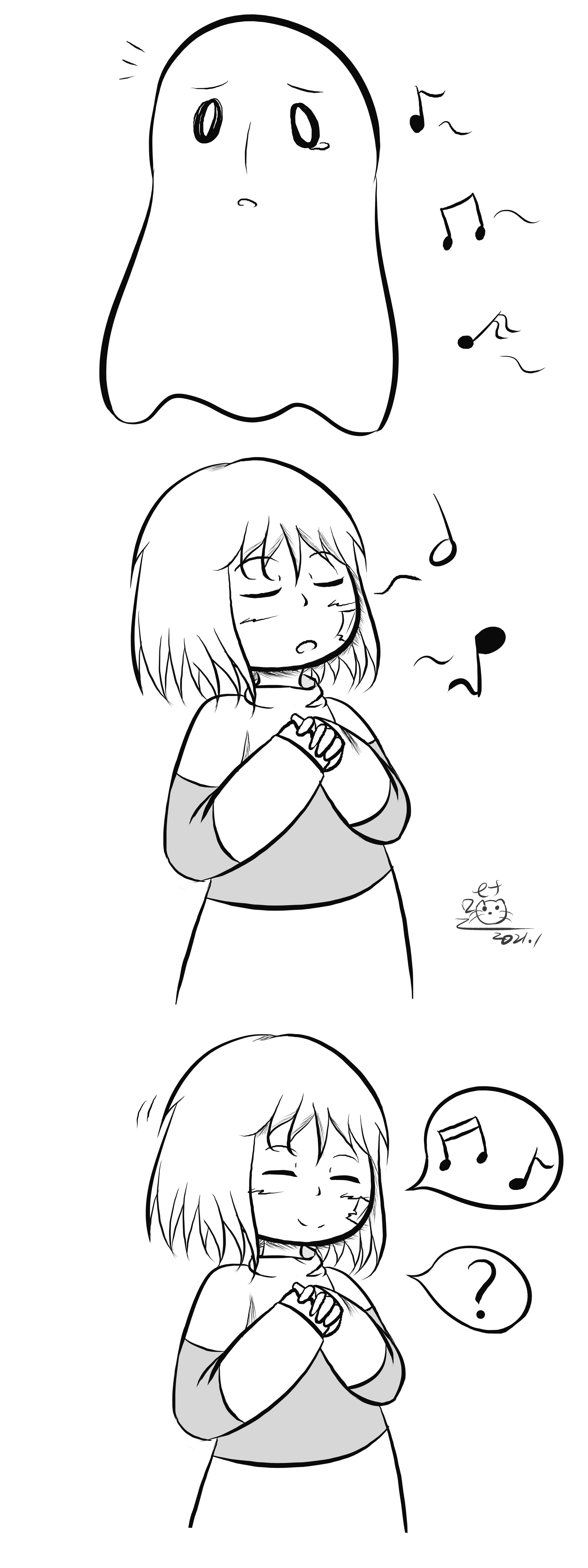But he's a ghost.... .3. And he doesn't have ears.... Then again, that didn't stop Papyrus xD