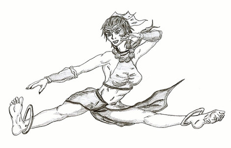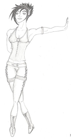 Another thing I love is the shape of her body. In Earthdawn elves are slim, sometimes skinny. So, how does an elven girl look like, when she does nothing different all day but practicing how to fight? *g*