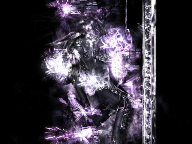 i was just thinkin about when you were gonna up something new..heh..excellent job..i love the blue u put in this piece..it shines through the whole thing..the techy stuff and fog r excellent in this piece..i love how they all just morph into the girl..ur 2d linework is incredible in this wp..definently one of ur best..excellent job