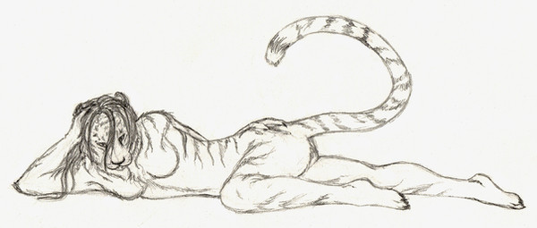Oh, she's beautiful. Her expression is rather alluring and the pose only serves to accentuate the figure. She seems the playful and curious sort. The detail rendered throughout is fantastic and lends a bit of realism to the fantasy theme - a natural look that's all the more believable, and something I too often find lacking in anthropomorphic art. You've definitely got the traditional pencil medium down.