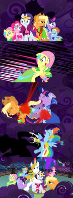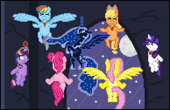 Thanks! Yeah, I knew I wanted to incorporate the Shadow Bolts in there somewhere or the scene would be stale, but didn't know where/how. I hope the faces on the trees in Pinkie's scene aren't too dark to notice, now that you mention having trouble seeing the Shadow Bolts.
