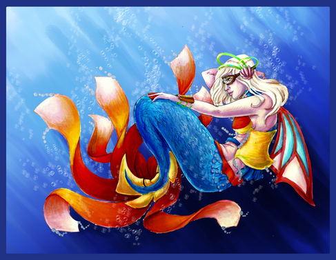 #mermaid #oc #bluehair #fish #fishperson #merfolk #merman #red #scales #siren #water