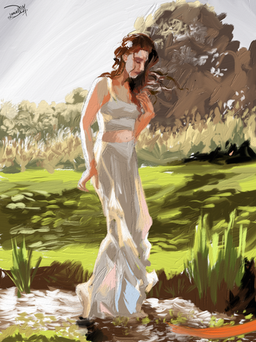 This is superb, especially for a study. The values are excellent and you are clearly a colorist. (Being a little crass, this puts me in the mind of a question I think Moses' adoptive father would ask: "Why is our son named 'I got him from the river'?".)