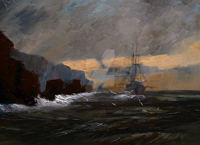 #brush #cliff #digital #oil #painting #rutkowski #sea #ship #study #88grzes