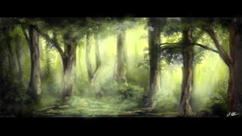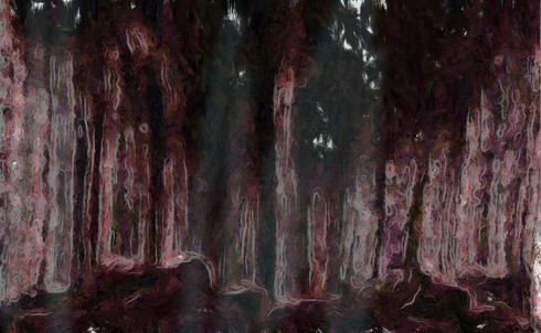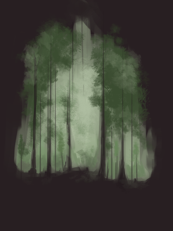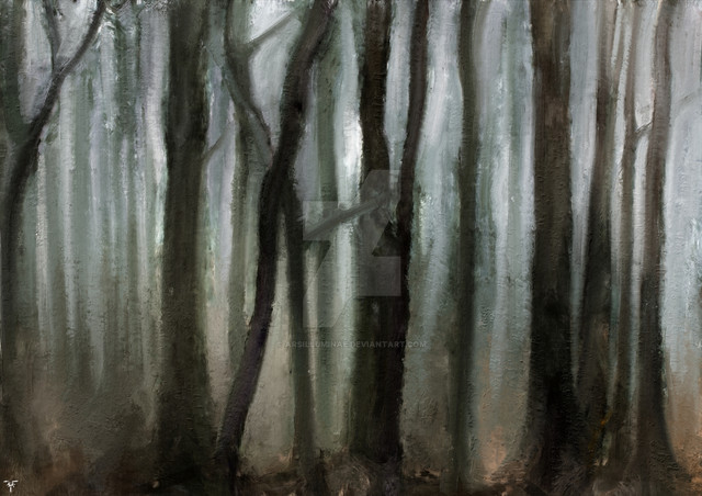 It does feel like there are two or perhaps one person in the artwork running. Like forest spirits maybe?