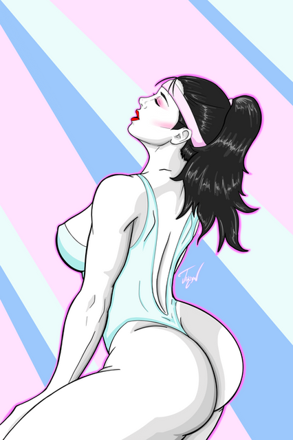 #1980s #80s #80sfashion #butt #digitalart #drawing #eighties #fashion #green #leotard #makeup #purple #1980sfashion #1980sinspired