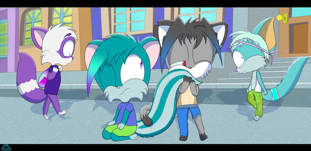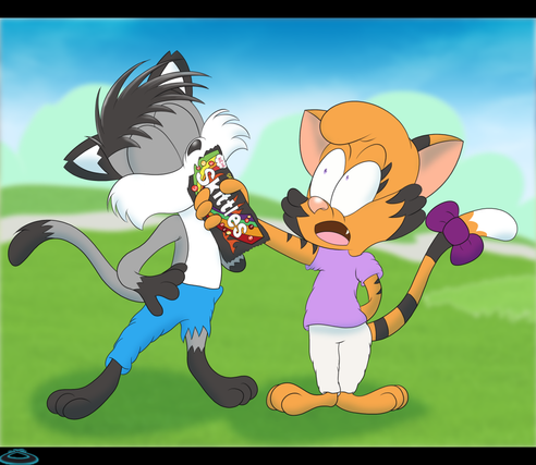 Dude, the perspective came out really great on this one!! Something about Sparkz' overall demeanor here is just so endearing, why is he so damn cute? XD Sophie's expression is great too, there's a lot of emotion in that mouth. Fantastical work bro!