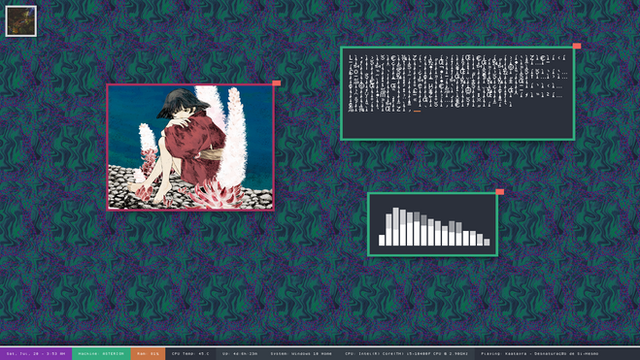 - this one wasn't made with bblean! i was using it at the time, but everything seen here could be accomplished without it. the bar at the top was all rainmeter!
