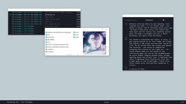Icons; Glyphys + a transparent icon for the drawer (it could just be a black square, though, for all I know)
